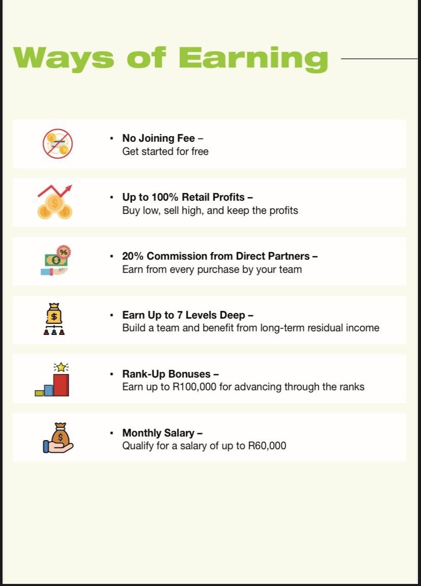 Just Imagine waking up each morning and knowing you have the potential to earn R3,000 to R10,000 every month while helping others improve their health and finances.